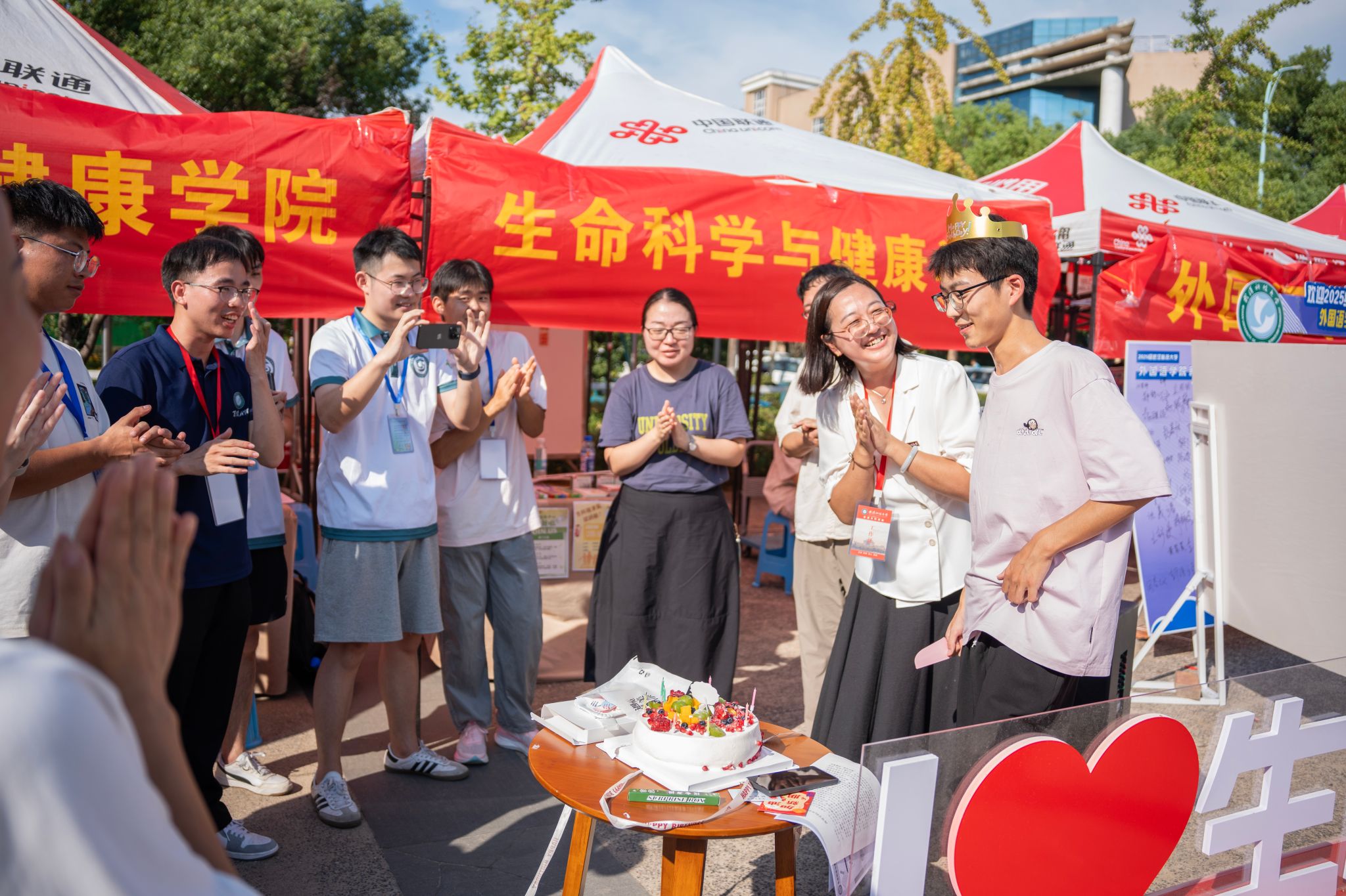 生科院老师为生日的新生带上生日帽 张贝贝摄