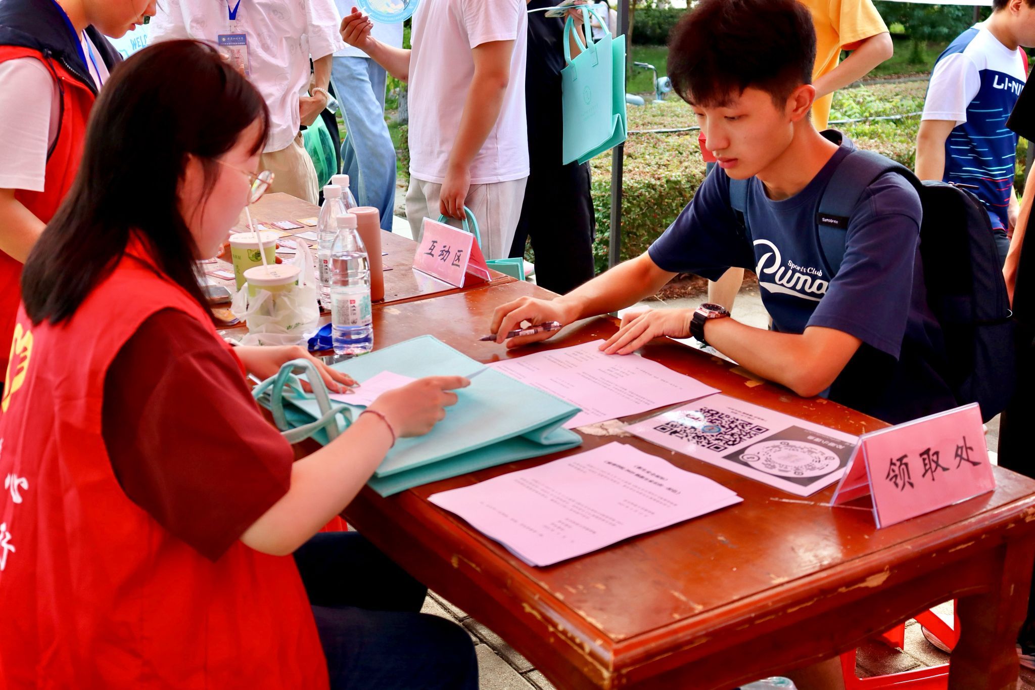 理学院新生领取迎新礼品 王悦潭摄