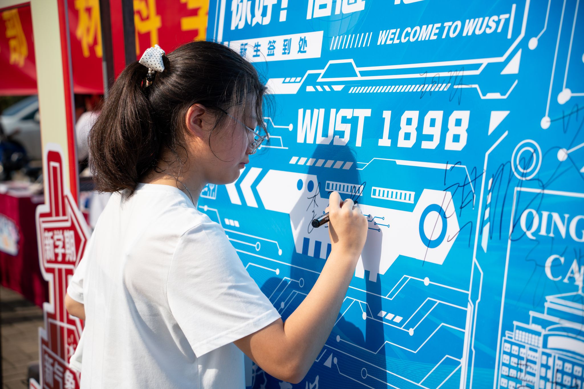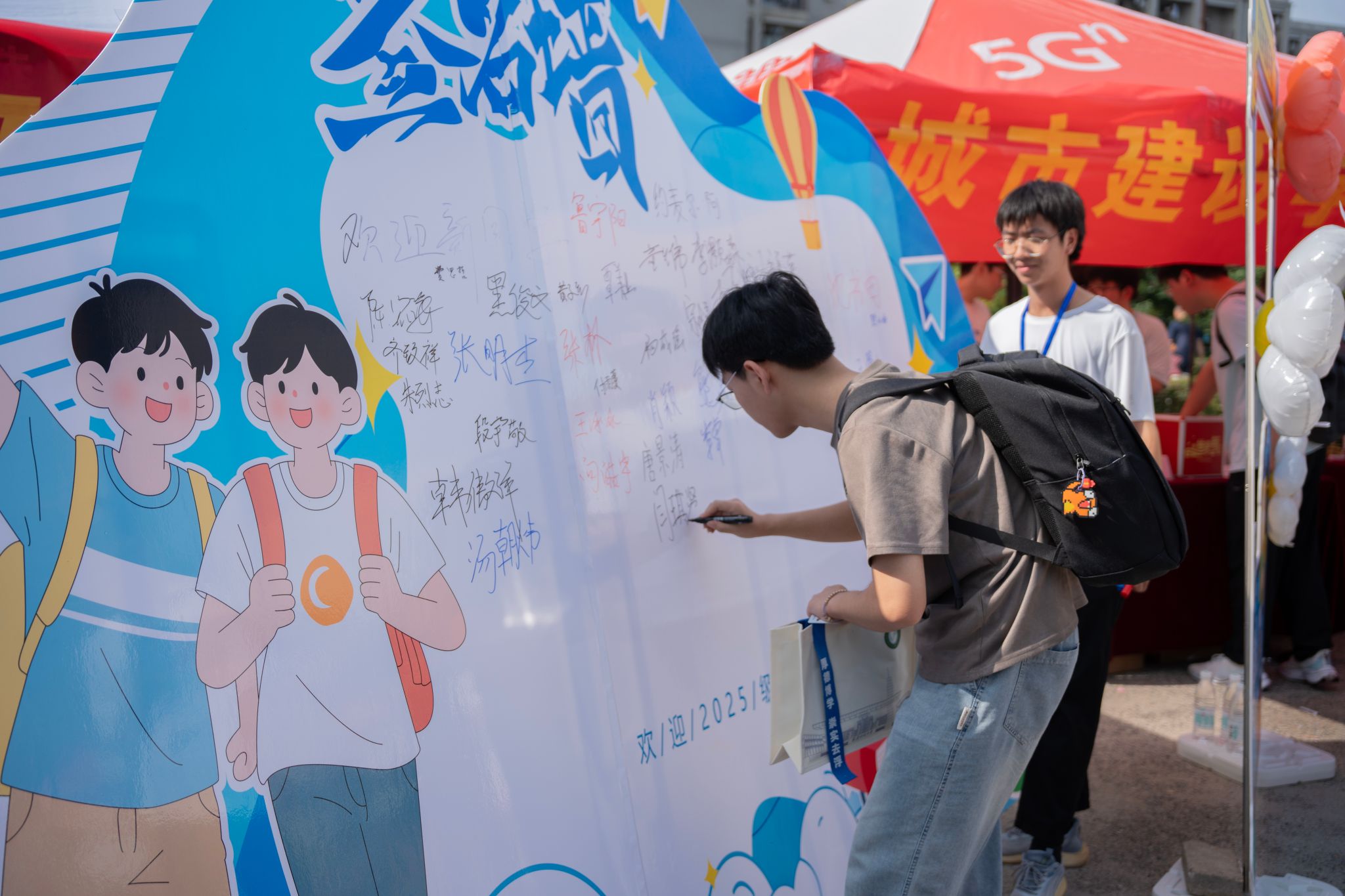信息学院新生打卡签名墙 陈婷摄