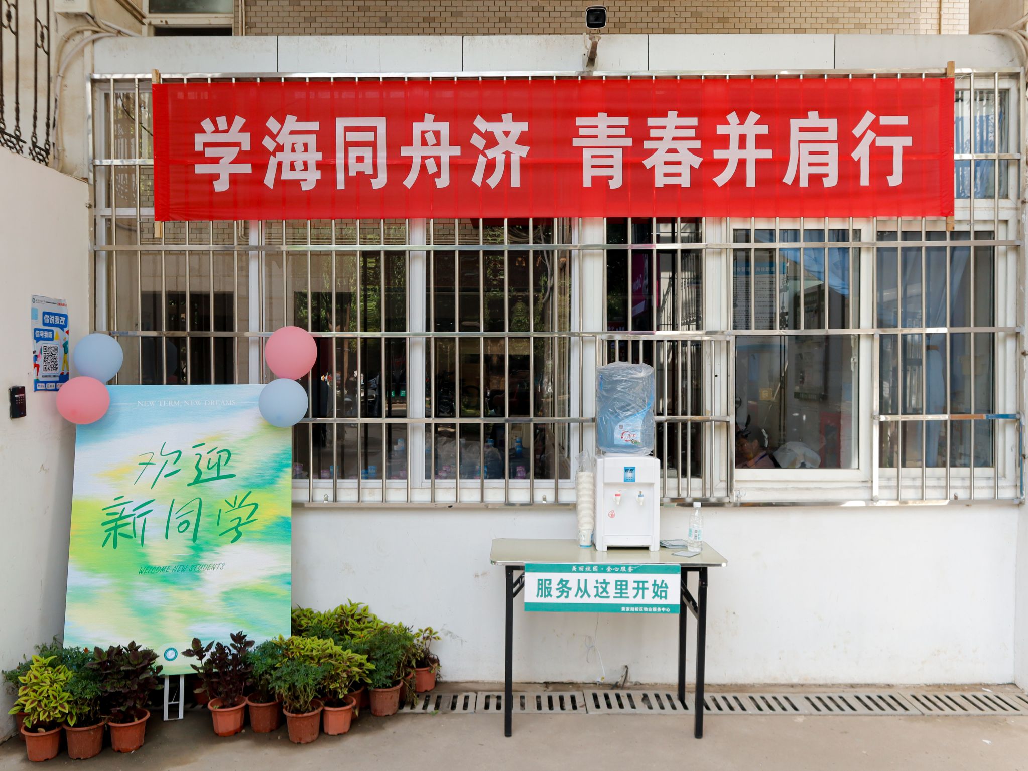 教八楼迎新标语 孙正恒摄