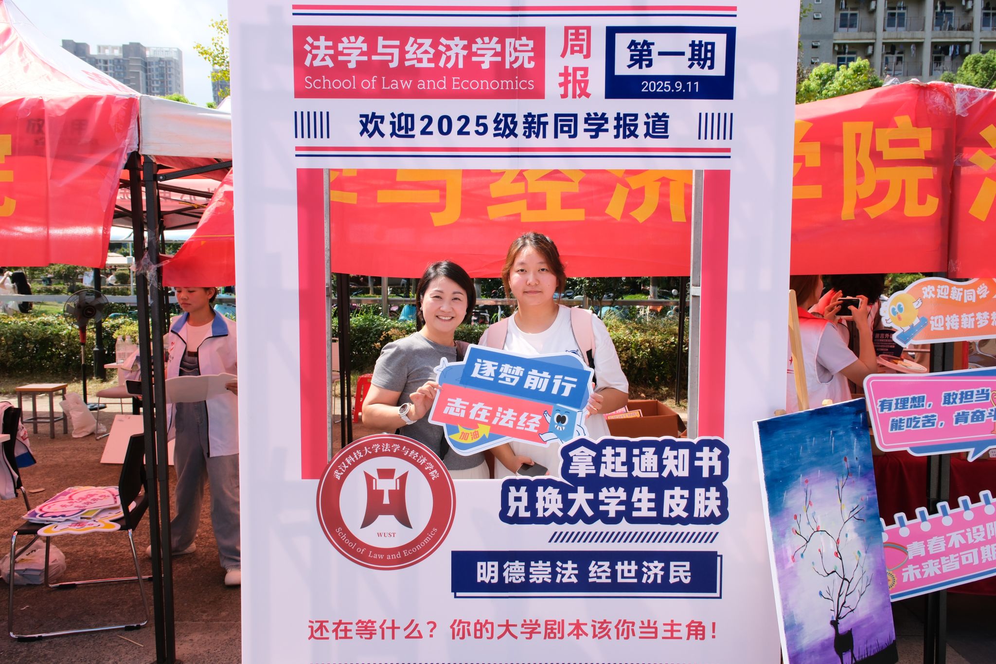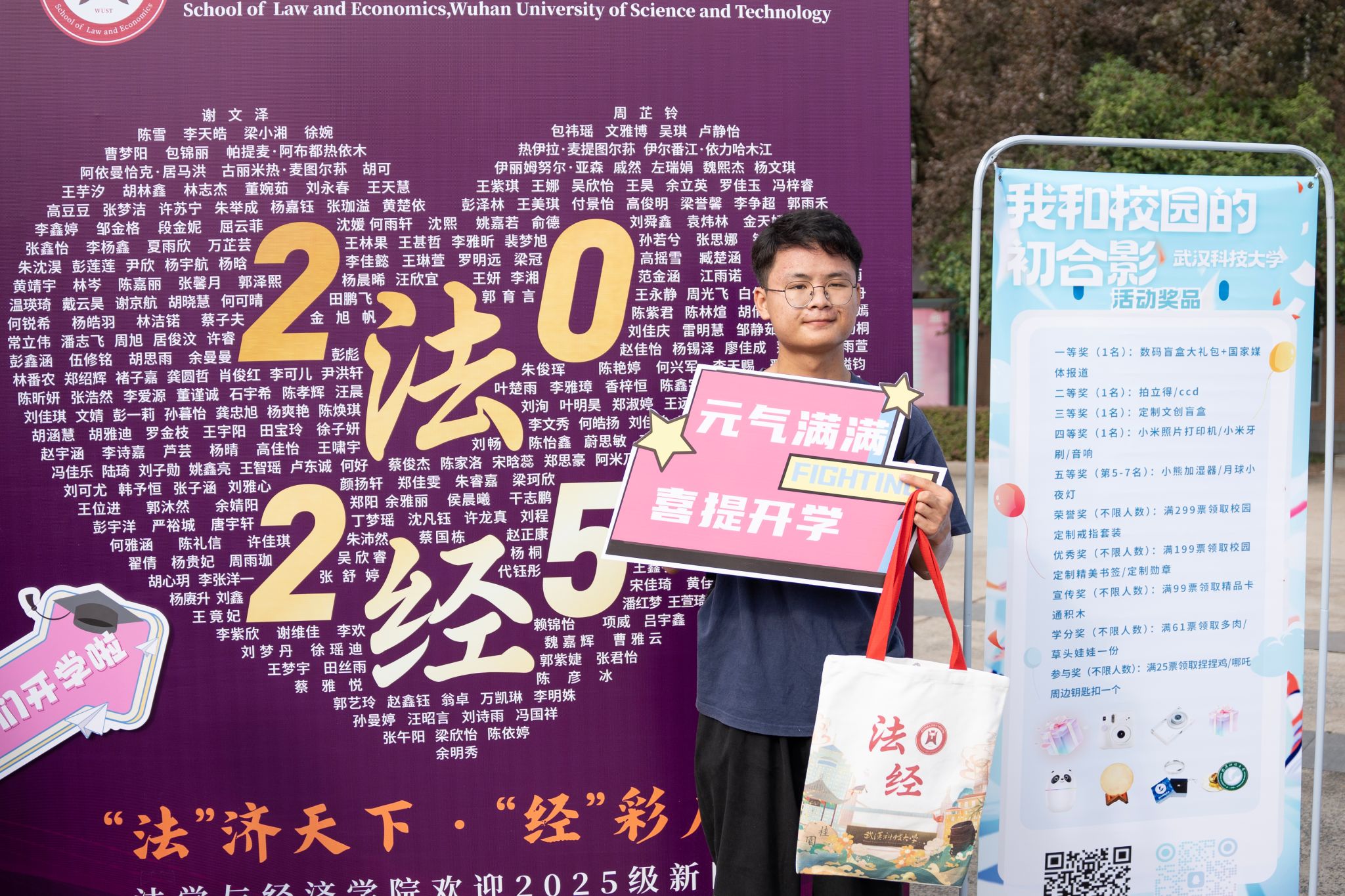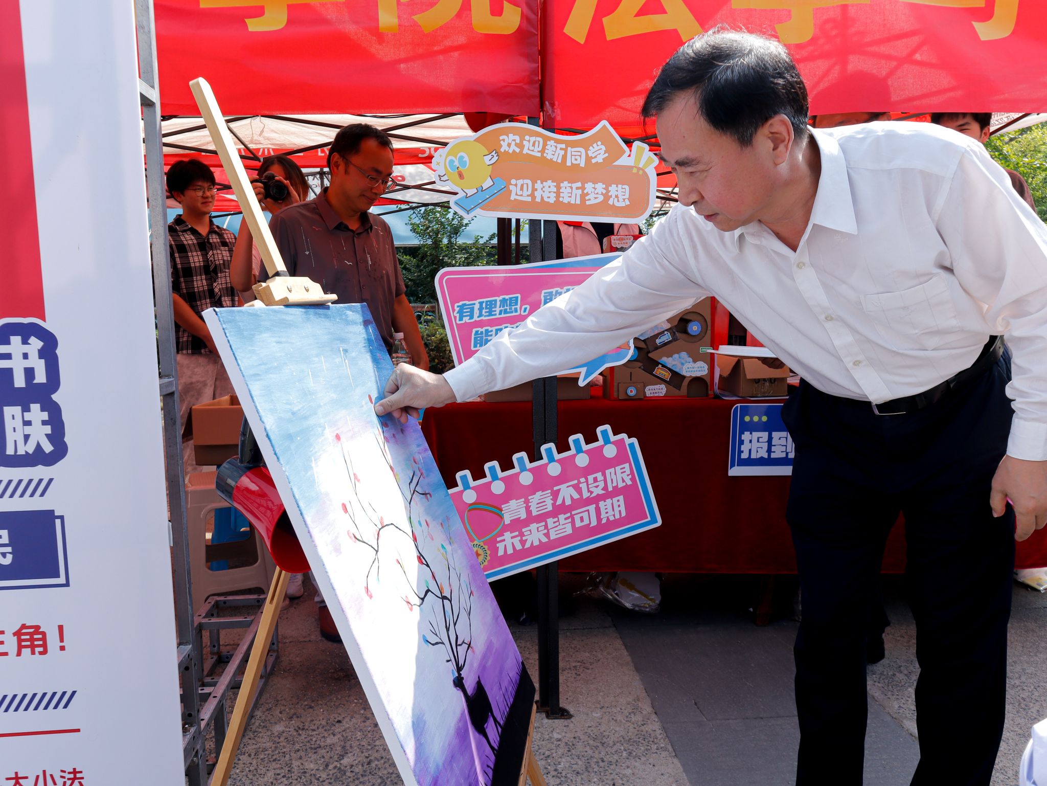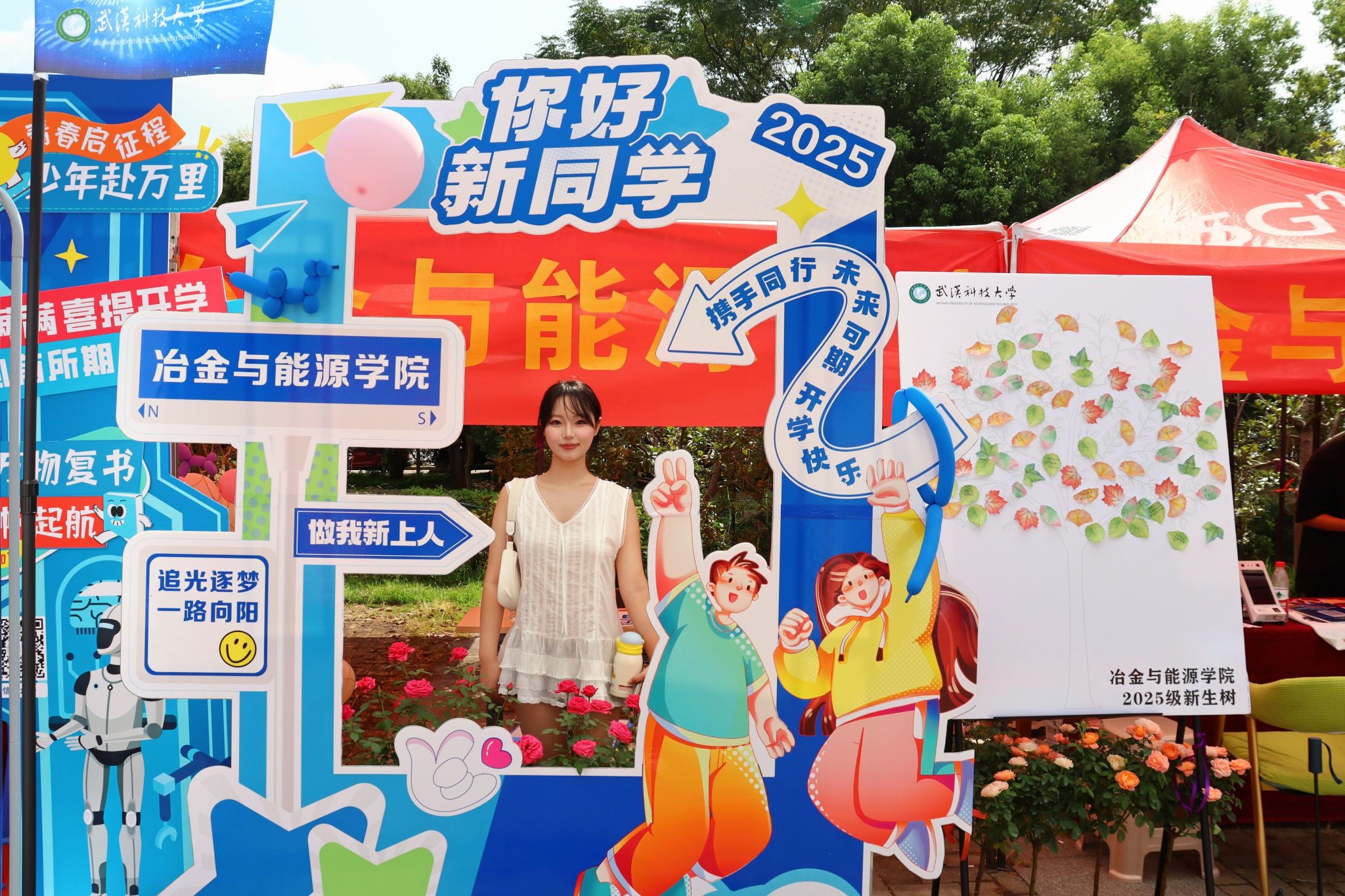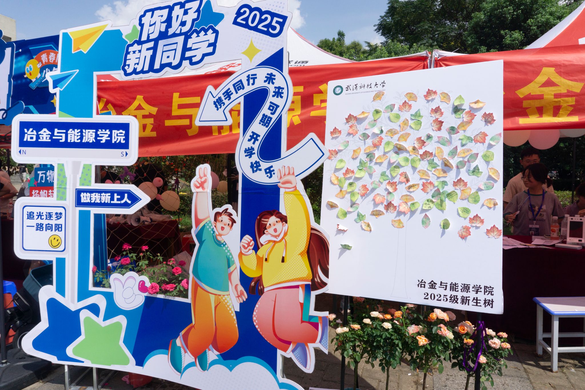 冶金与能源学院迎新展板和新生树 刘阳子孑摄