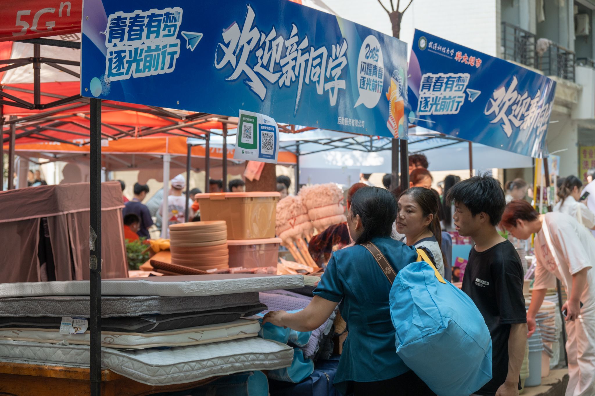 新生与家长购买生活用品 王悦潭摄