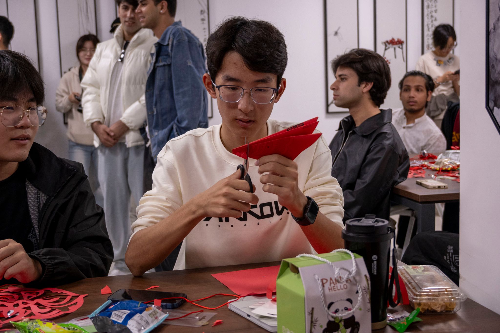 留学生和中国学生一起翻花绳 宋晓雅摄