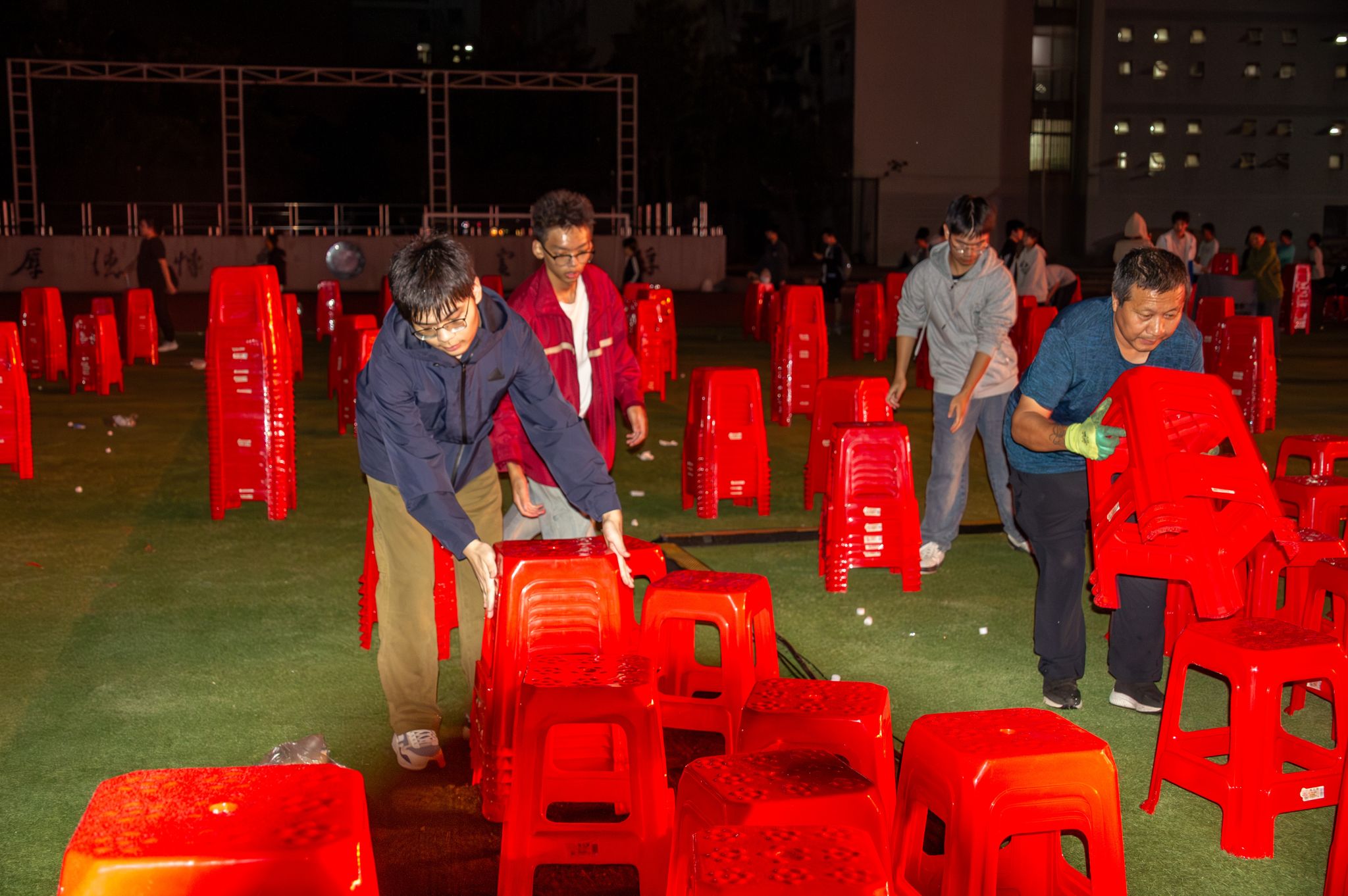 工作人员收拾场地 王翔宇摄