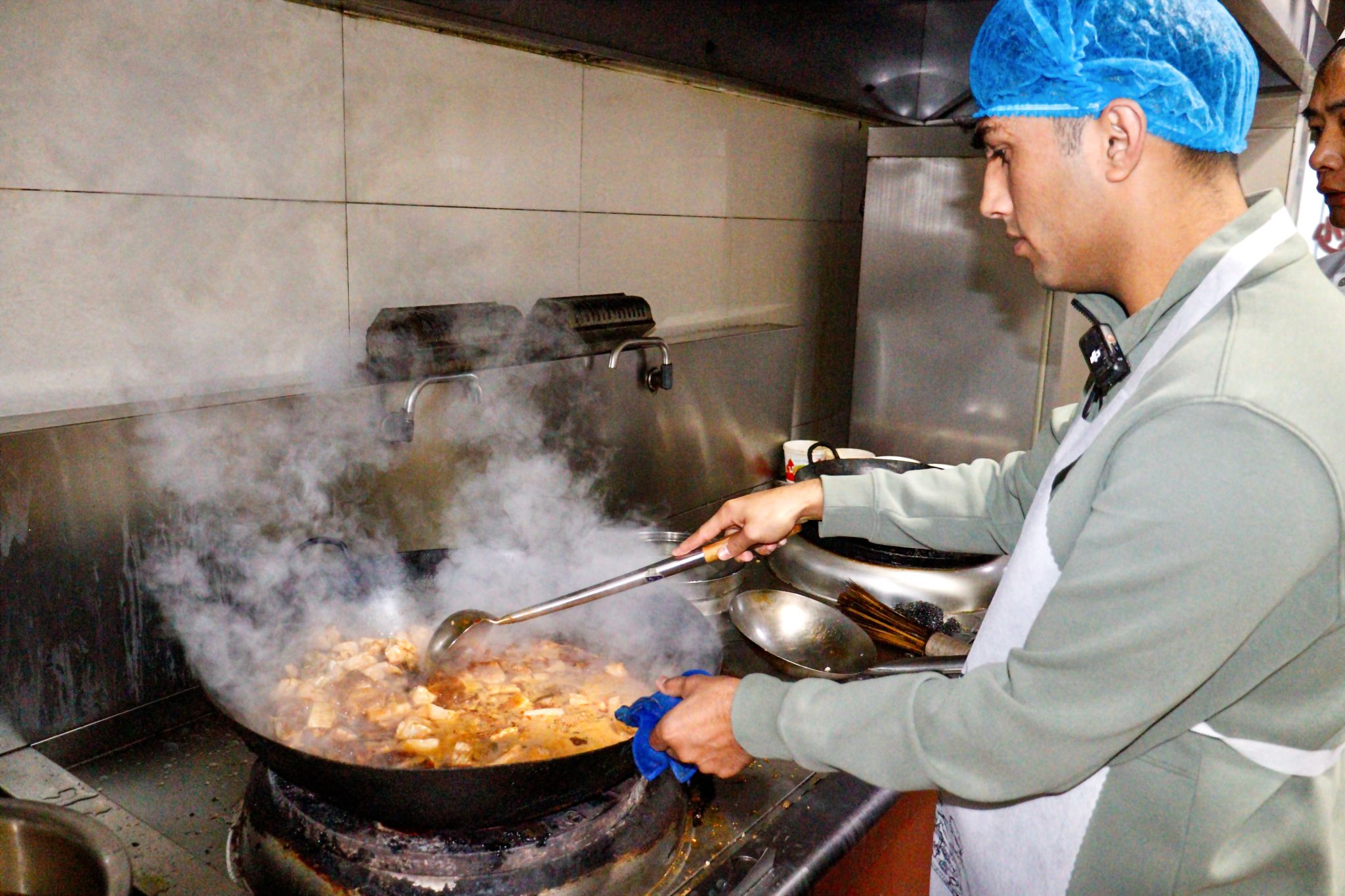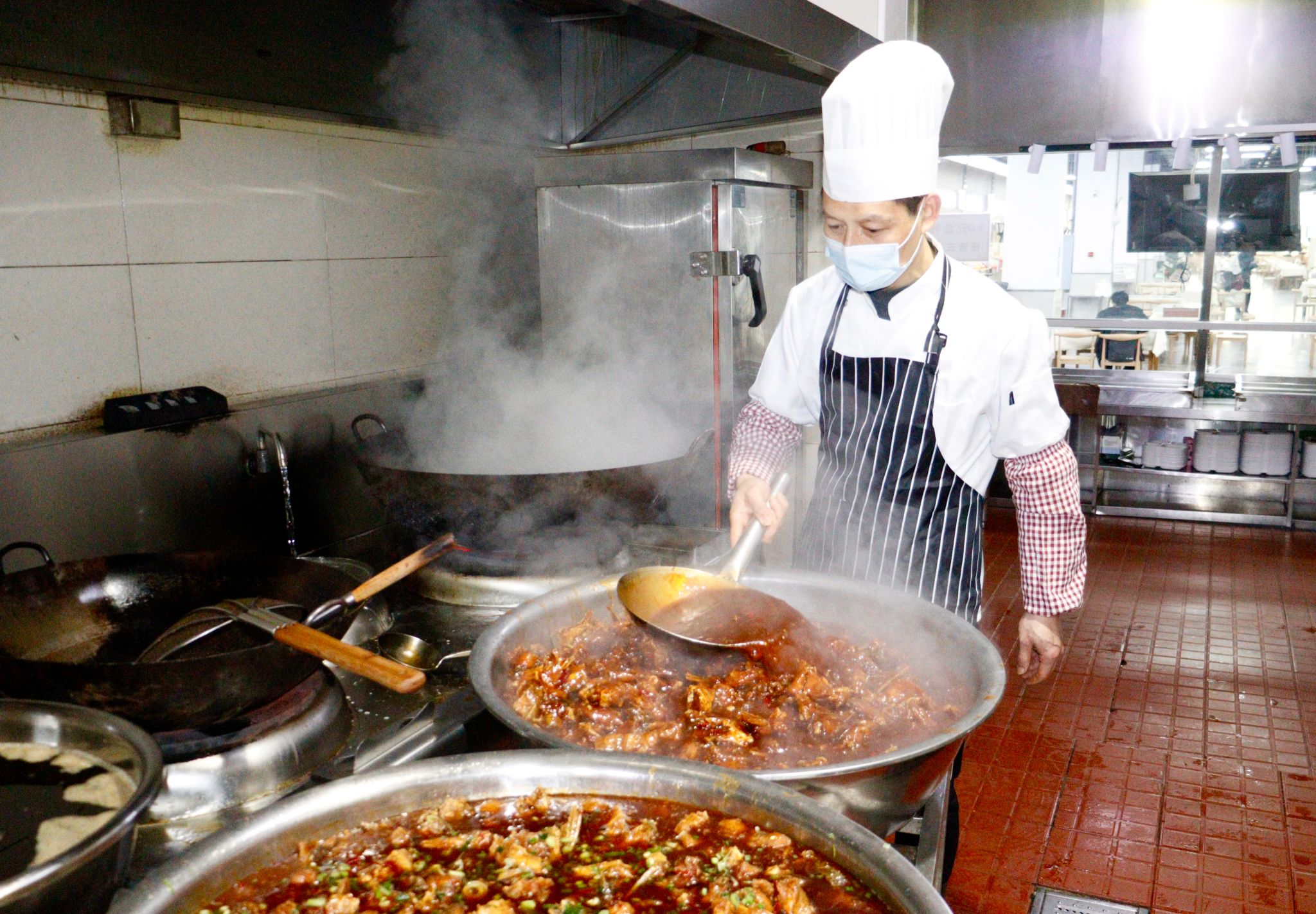 留学生、食堂负责人接受采访