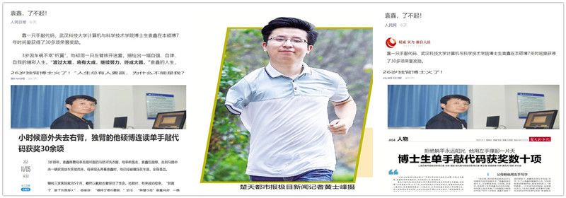 幼年“折翼”的他,20多年来,用一只左臂拨开命运的迷雾,在本硕博7年时间里,单手敲代码,获得三十多项奖励和荣誉,描绘出自强自律的精彩人生。