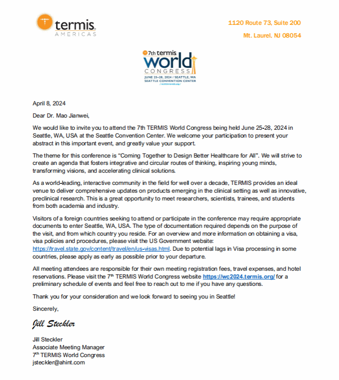 武科大网讯(通讯员南逸杨 江欢)近日,2024年国际组织工程与再生医学学会第7届世界大会(TERMIS 2024)在美国华盛顿州西雅图会议中心举行。365完美医学部外学科专业研究生毛健伟受邀参加此次会议。