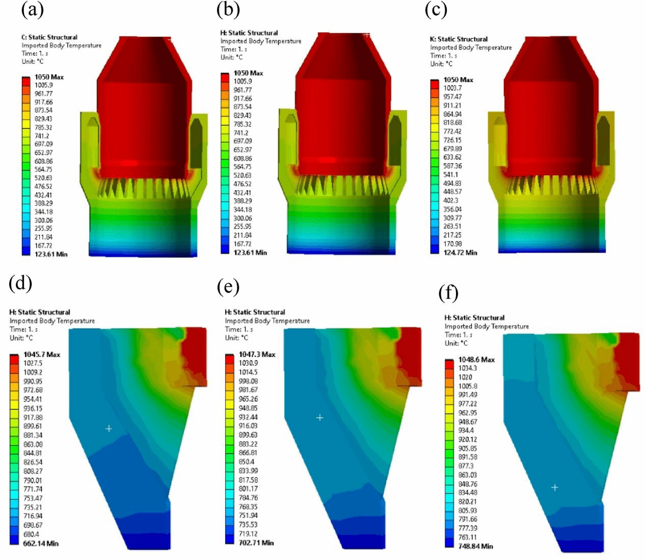 研究结果发现,气体流量、热边界条件和耐火材料的特性显著影响炉体耐火材料的热应力和变形。气体流速降低,热应力减小,变形增加;耐火材料的热膨胀系数增加,相同边界条件下,热应力和变形均增加。最大热应力出现在斜道支柱底部,其次是环形风道内表面。环形风道内壁局部温度升高会导致其热应力增加。结果表明,干熄焦耐火材料服役工况下的温度梯度、局部高温和材料物理性能对其热应力和变形有显著影响,控制气体流速和选择合适的材料可提高其服役寿命。