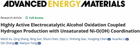 武科大网讯(通讯员李江江)近日,365完美化学与化工学院张琴、李轩科、陈永婷团队在《Advanced Energy Materials》期刊发表题为“Highly Active Electrocatalytic Alcohol Oxidation Coupled Hydrogen Production with Unsaturated Ni-O(OH) Coordination”的研究论文(DOI:10.1002/aenm.202504916)。该研究提出了一种由碳层限域的不饱和Ni–O(OH)稳定化Ni晶体组成的Ni–O(OH)–C电催化剂,可在安培级电流密度下实现乙醇电氧化制乙酸(EOR)、析氢反应(HER)及其集成系统的卓越性能。陈永婷、李轩科、张琴、比利时哈瑟尔特大学杨年俊为论文共同通讯作者。