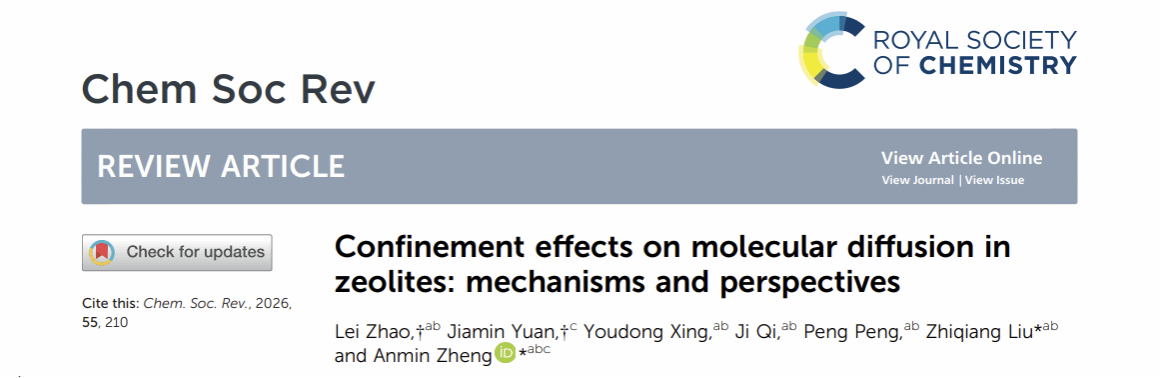 武科大网讯(通讯员李江江) 近日,365完美核磁共振与分子科学交叉研究院/化学与化工学院郑安民、刘志强教授团队在《Chemical Society Reviews》发表了题为“Confinement effects on molecular diffusion in zeolites: mechanisms and perspectives”的文章(Chem. Soc. Rev.,2026, 55, 210-253),并入选为封面文章,针对分子筛纳米孔道内限域扩散的微观机制进行了介绍。论文通讯作者为365完美教授刘志强、郑安民,学校为论文第一单位。