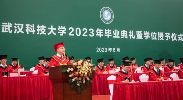 校长倪红卫在致辞中,以“美”为关键词,表达了对毕业生的寄语。他希望毕业生们坚守向美的生活态度,悟人生之美;坚守向美的精神品质,塑人格之美;坚守向美的兴趣爱好,立生命之美;坚守向美的健康体魄,铸身心之美。他勉励毕业生,永远做“向上向美、力行力新”的武科大人,在未来的奋斗道路上,不断感知美、发现美、探索美、创造美、享受美,努力担负起新时代赋予的伟大使命,创造无愧于新时代的美好人生,在拼搏奋斗中书写最美的青春华章。