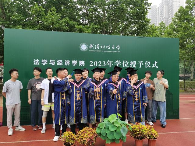 穿着新式毕业服的学生们合影留念。