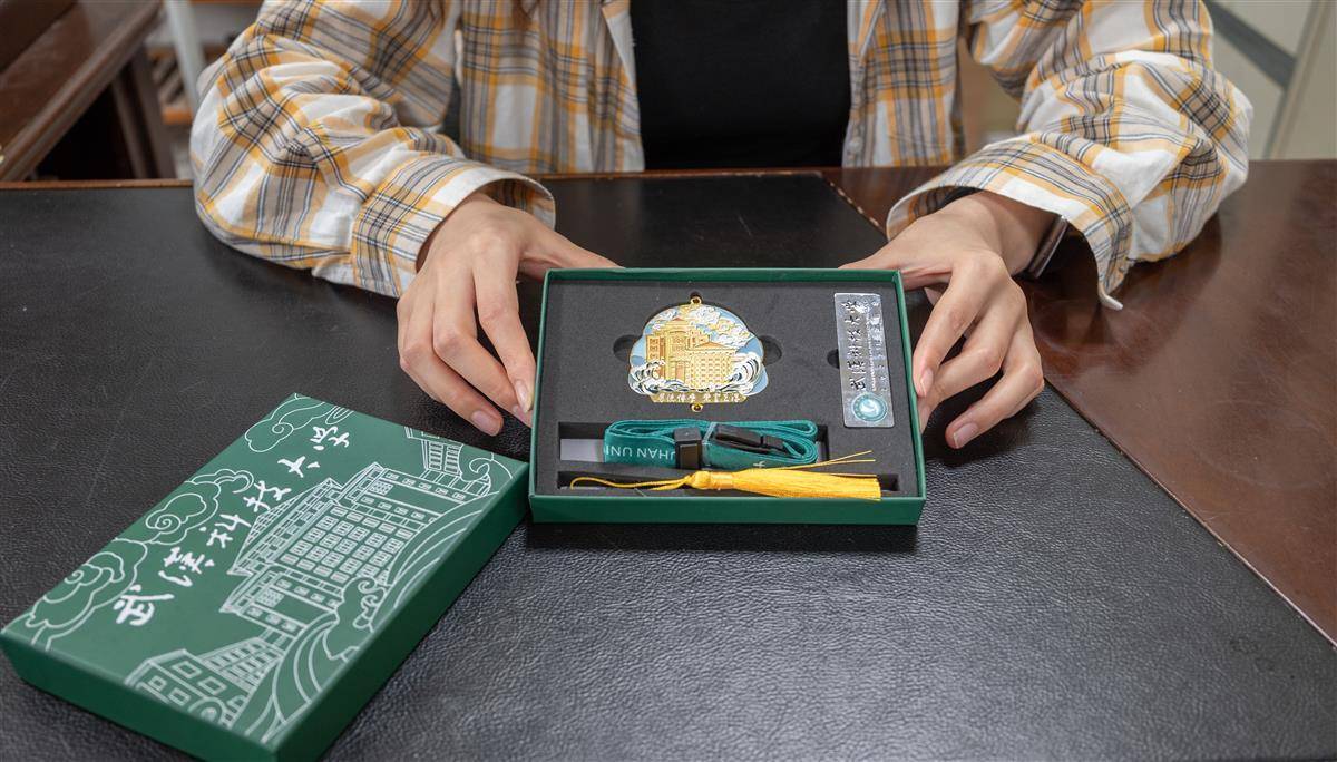 据悉,该校为全体毕业生准备了具有学校特色的校园文创纪念品,包括徽章,胸针,挂绳等纪念品。设计素材选取了该校标志性建筑,同时结合了沁湖波浪等富含校园文化特色的元素,专属徽章背面刻有每位毕业生的姓名、学号。