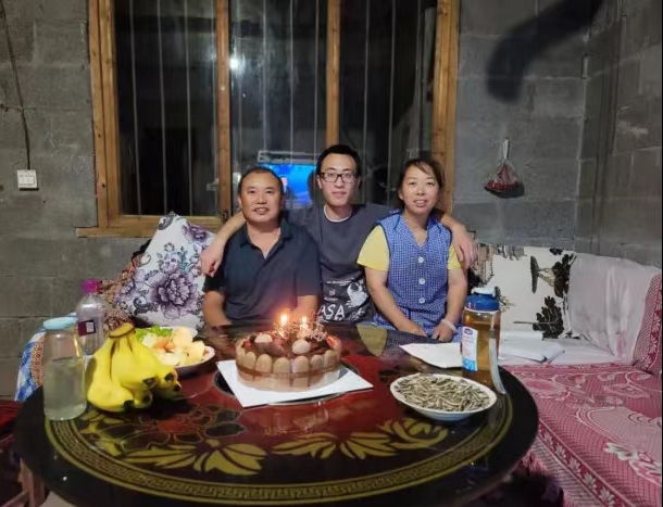 贺章涛和父母的家中合影。