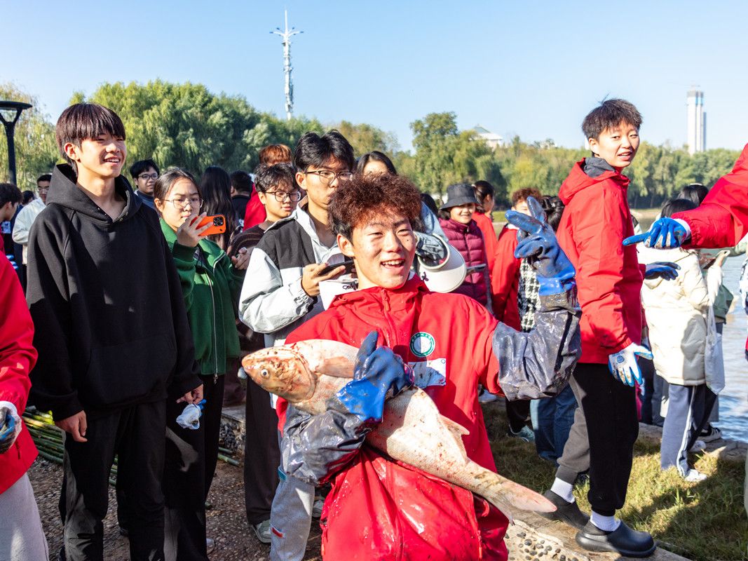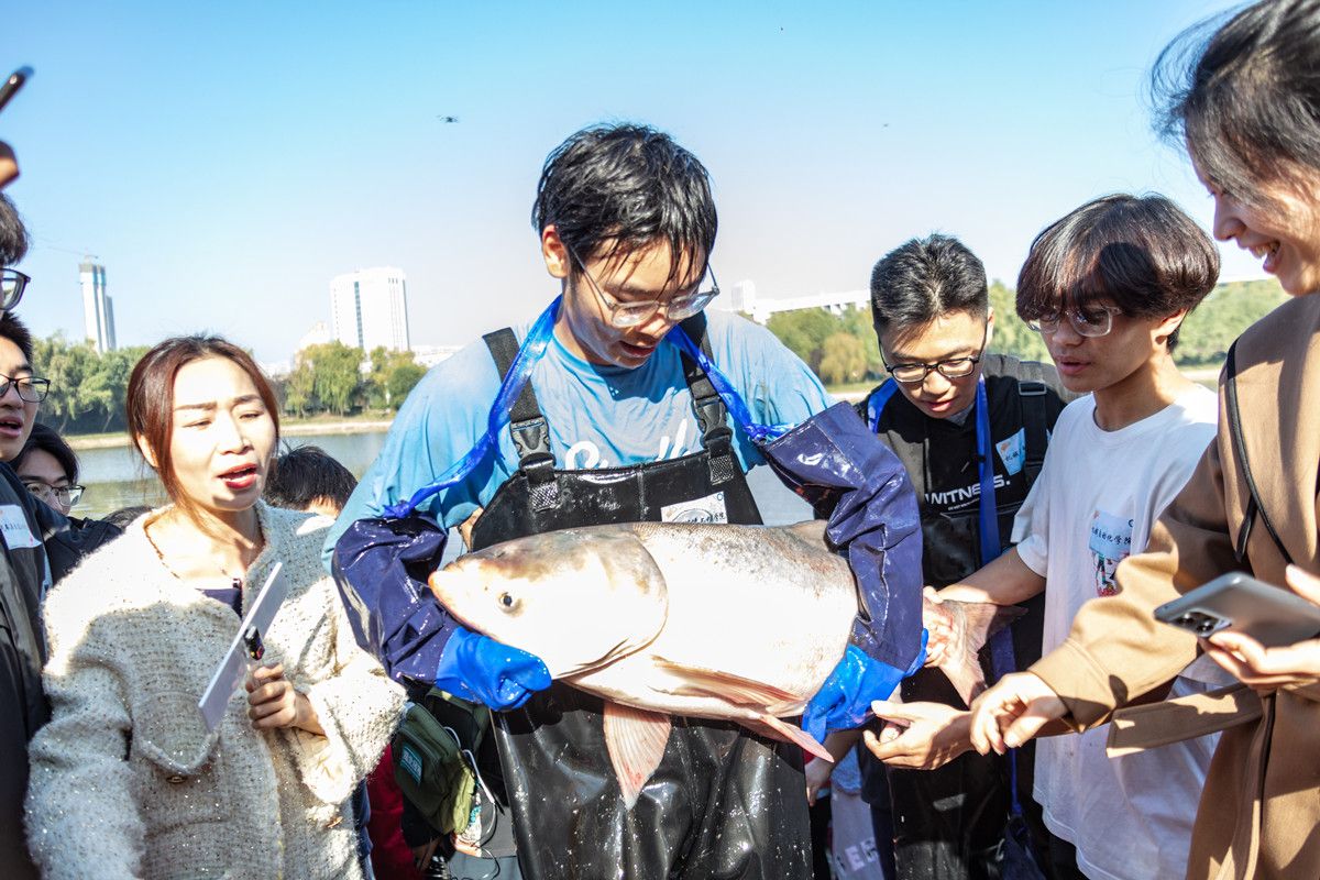 “鱼王”被捕获的消息随即传开。食堂阿姨、保洁员、教授们纷纷围了过来,给鱼照相跟鱼合影,欢笑声响彻湖畔。“下一次捕鱼会不会有更大的呢?”