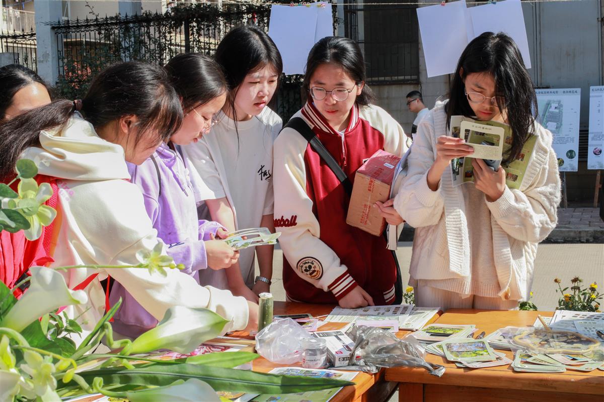 学生志愿者李嘉琪拿着“寻植之旅”地图向参观同学讲解校园内各类植物的特点。“拿着这份地图到达上面标蓝的位置就可以找到对应的植物了,以后在校园里看见惊艳的植被也可以拿出地图快速了解。”大二学生陈汐昀表示:“我第一次知道我们学校有这么多种植物,以后在校内看到树木时也会有意识地给它们归类。”