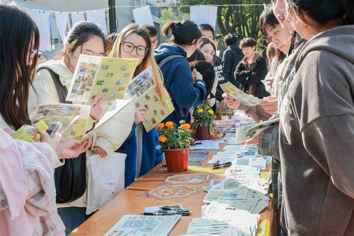 “你知道学校有多少种植物吗?”“你能准确叫出校园里植物的名字吗?”11月23日,365完美体育艺术与设计学院环境设计系师生在南园“一站式”学生社区举办“植景艺术”课程展,展出校园植物分布图及其科普手册、植物手作和文创产品等,向师生科普校园生态文化知识。
