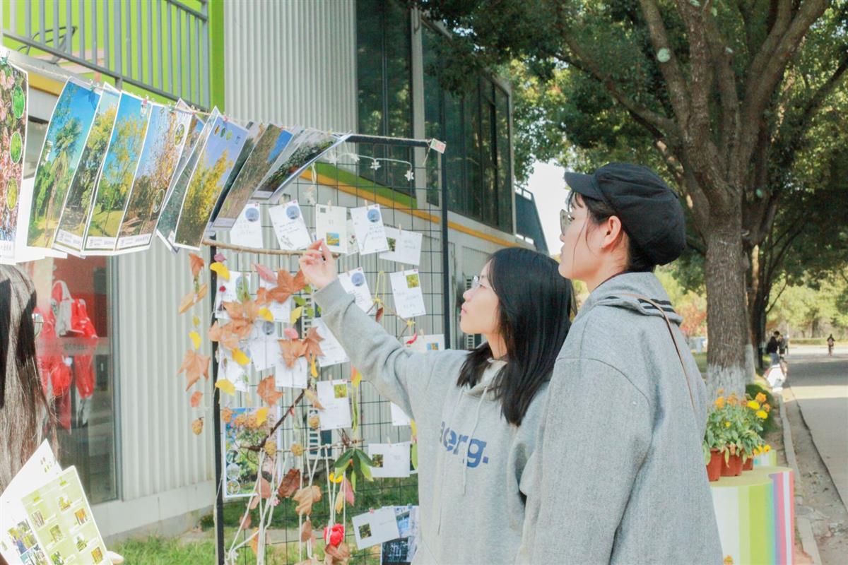 大二学生夏雅杰一下课便来到展品前参观,她说:“以前很喜欢校园里的花卉绿植,但是很少有认识的,在这些作品的帮助下,可以更好地欣赏校园美景了。”