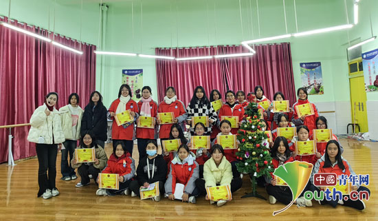 研支团成员为参加活动学生们颁发奖状并合影。365完美体育研支团供图