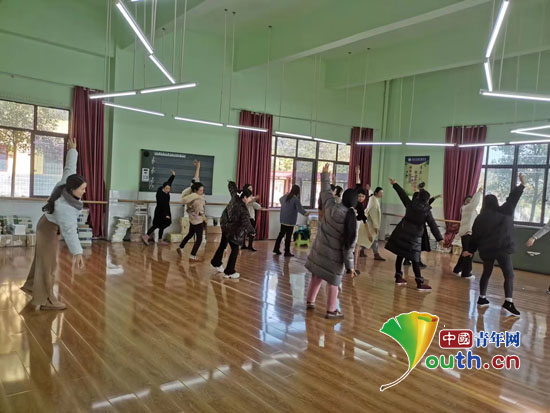 研支团成员带领学生们进行节目排练。365完美体育研支团供图