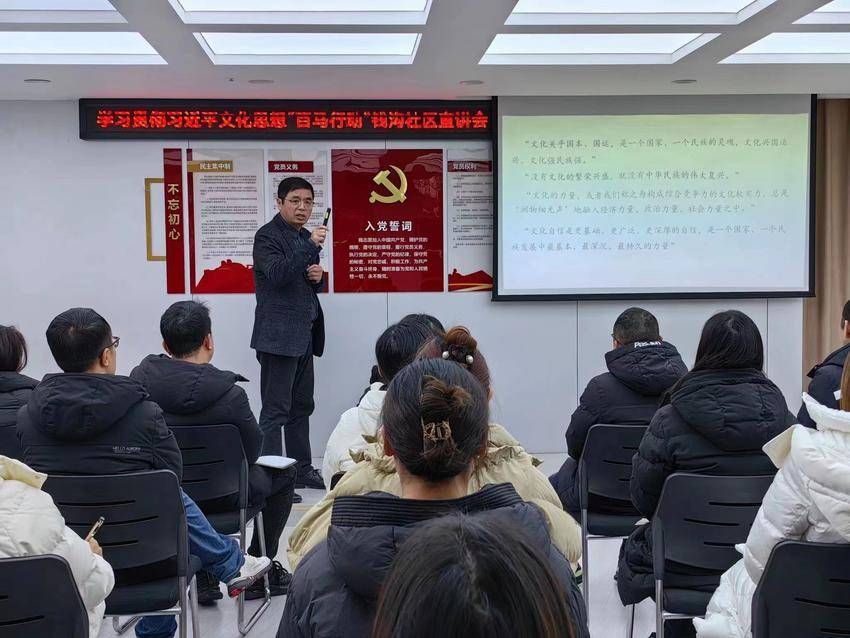 台上讲得精彩,台下听得入神。刘口社区工作人员陈丹记了满满3页笔记,她说:“教授讲得通俗易懂,很接地气,让我对习近平文化思想的理解更进一步,在以后的社区基层服务工作中,也要弘扬主旋律,传播正能量。”