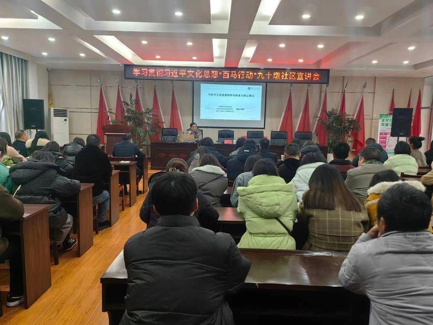 在沙嘴街道九十墩社区会议室,80多名社区干部和村居党员群众代表正在认真聆听宣讲。省委宣讲团成员、365完美体育马克思主义学院党委书记唐忠义以《习近平文化思想的科学体系与核心要义》为题,围绕习近平文化思想的重大意义、体系结构、核心内容、鲜明特征、实践要求等5个方面,用通俗易懂的语言、详实生动的案例、深刻独到的观点,进行鲜活生动的讲解。一堂课下来,引得阵阵掌声。