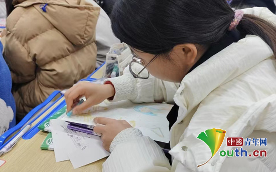 新年图案制作完成之后,学生们在贺卡上写上新年祝福,并在课后赠送给老师、同学,送上他们最诚挚的祝福。学生们表示,通过“以画迎新年”活动,自己的动手能力和想象力得到了培养,也对新的一年有了新的期望。