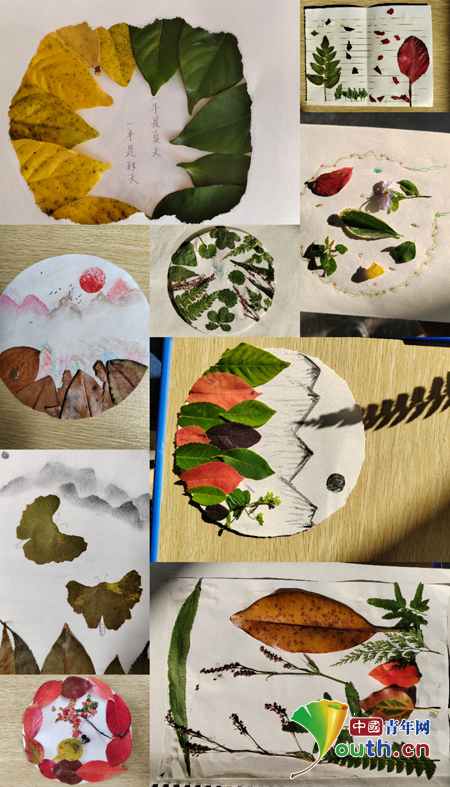 图为学生制作的树叶画。武科大研支团供图