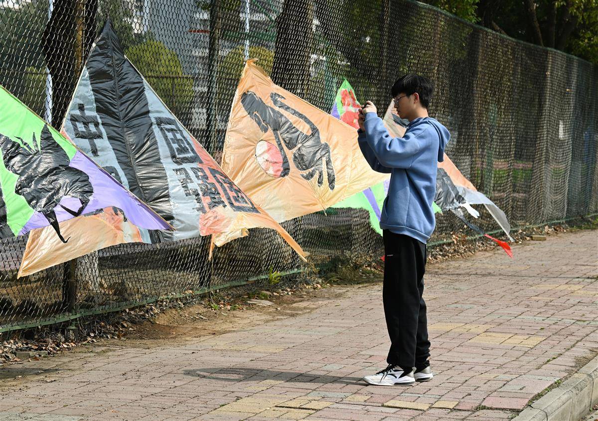 据悉,尹关聪目前已累计自制约700张风筝,自制“风筝展”将持续展出两天。“我想让大家了解我国的风筝文化,踏踏青,放松一下心情。周末时,学生们都有空了,我也想教大家放风筝。”尹关聪说。