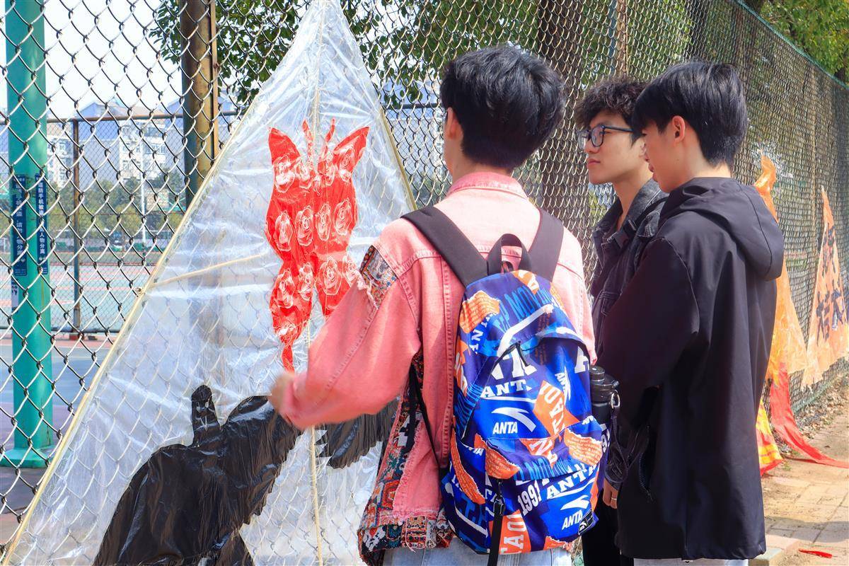 学生围观自制风筝。通讯员 马茜云 摄