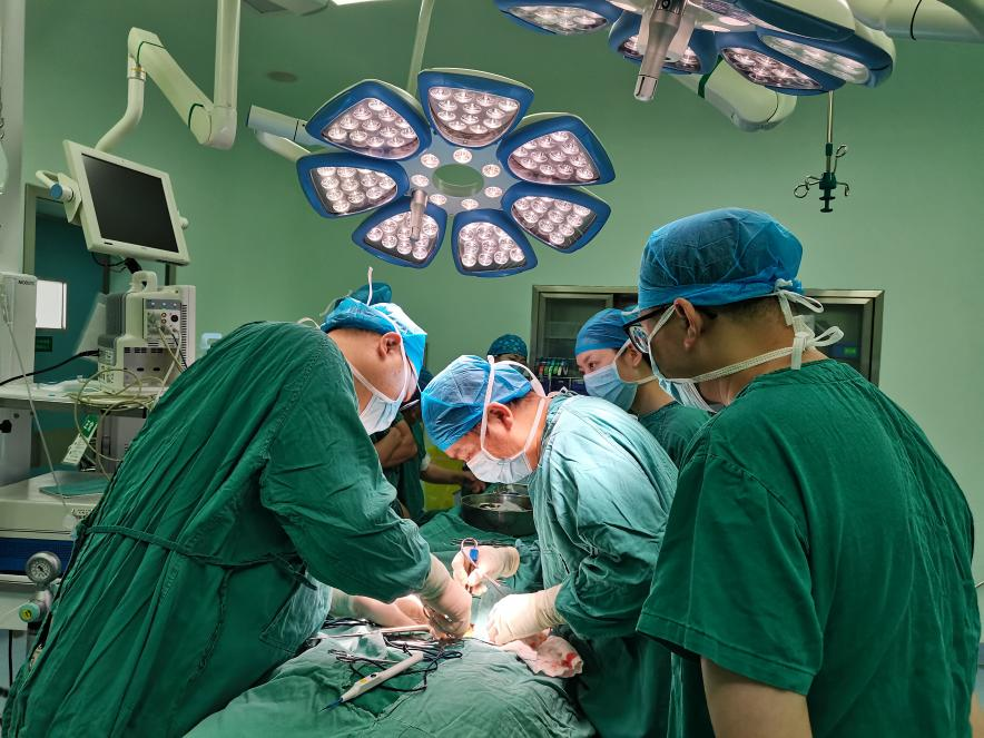 入住医院后,经综合科、神经外科术前多学科MDT充分讨论准备。考虑爹爹年龄较高,基础疾病较多,肺部感染较重,低蛋白血症,肝内胆管结石等。于是,先给予腰穿释放实验,测压正常、症状有所改善,后经过综合科细心调理。家属同意后,在麻醉团队精心护航下,神经外科历经1小时,将一根小小分流管经过头部脑室、耳后、颈部、胸部皮下组织潜行放置腹腔内,成功将脑子里水引入腹腔,术后恢复良好,第二天就能下床活动。