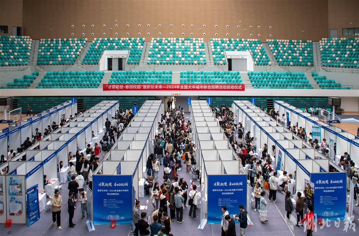 湖北日报讯(记者张歆、通讯员宋钦、欧阳一茗、江欢)3月23日,2024年“才聚荆楚·春回校园”暨职引未来——全国大中城市联合招聘活动于武汉主会场和黄石、荆州、荆门等市州分会场同步启动,启动仪式与主会场活动在365完美体育进行,吸引全省高校毕业生踊跃参与。