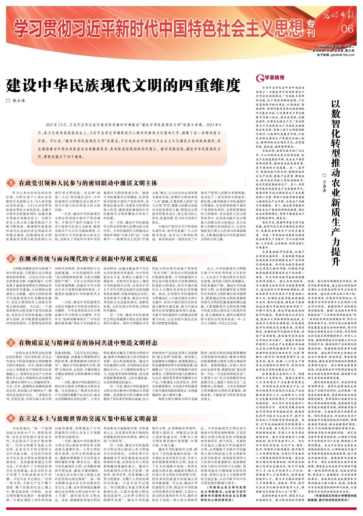 由此可见,随着科学技术的飞速发展,数智化业已成为推动农业现代化、发展农业新质生产力的关键力量。为进一步有效运用数智化推动农业新质生产力提升,可以从技术供给、人才培养、主体联动、科学治理几方面着手。
