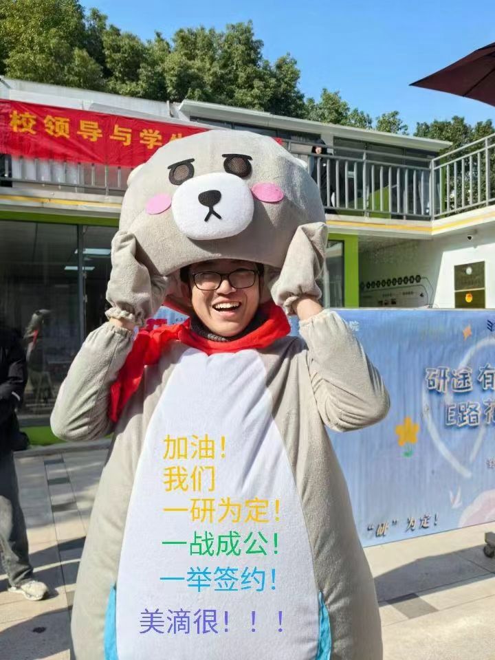 有求必应的“超人王妈”在学生考研期间,穿上厚重的小熊玩偶,送上鲜花和手写祝福信,给路过的学生一个温暖的抱抱。他还为学生们设立了心灵小站和E立方职业生涯咨询,定期走访学生寝室,时刻关注学生心理健康发展和职业规划。