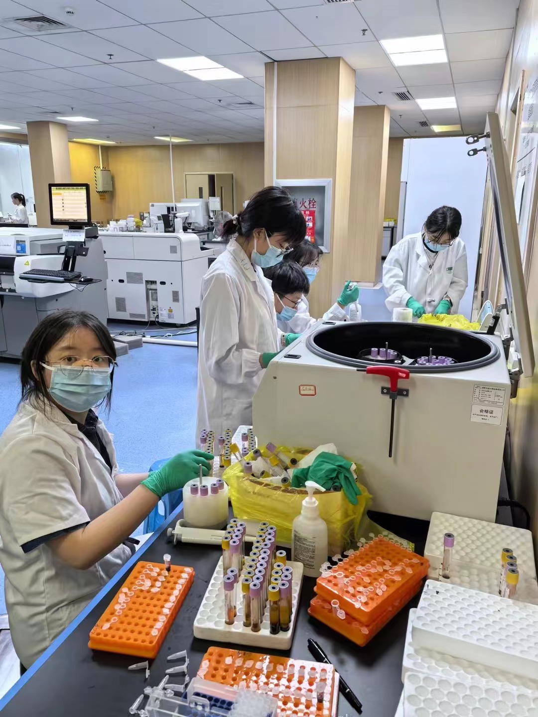 晚上,团队回到位于大悟县中医医院的驻地继续工作。量表组整理白天填写的各项量表信息,核对数据,评判问卷填写质量,血样组则在大悟县中医医院的检验科实验室分装、冰冻当日血样,避免样本因高温变质。