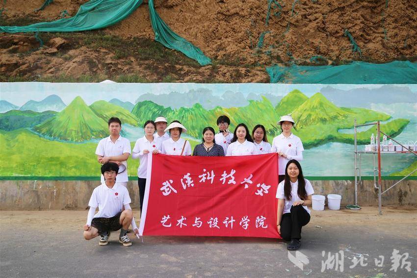 今年七月,他和队员们来到郧西县夹河镇金銮山村,和石庙子村相隔约60公里。在金銮山村,队员们发挥专业特长,与村民一起将当地的自然风光、风土人情绘于墙面、公厕等地,推动美丽乡村建设。还开展非遗课堂、地质科普等支教活动,奔赴汉江流域进行防汛调研,用自己的双手让村子越来越美。