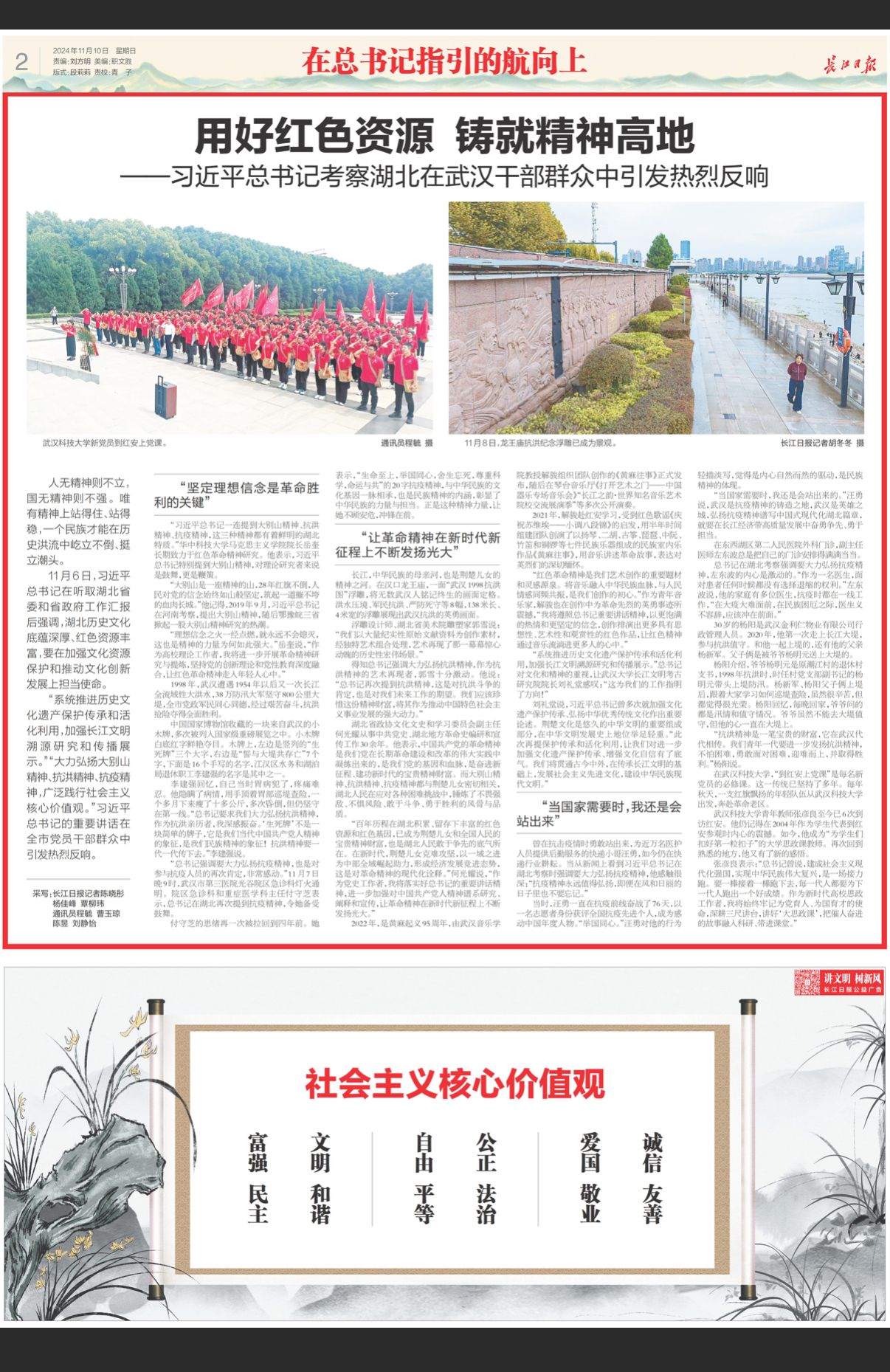 11月6日,习近平总书记在听取湖北省委和省政府工作汇报后强调,湖北历史文化底蕴深厚、红色资源丰富,要在加强文化资源保护和推动文化创新发展上担当使命。