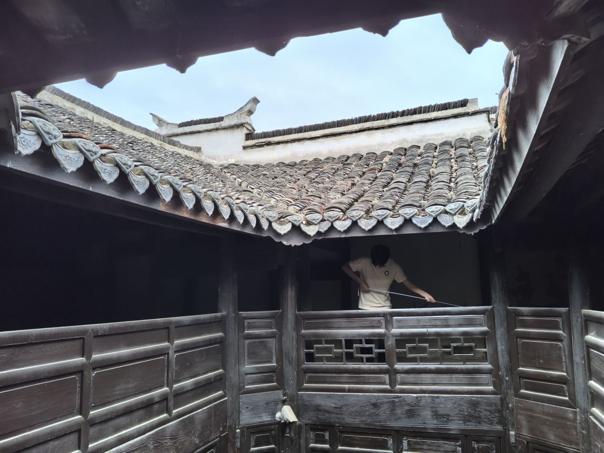 城市建设学院实践团队队员正在对古建筑开展测绘工作 向盈盈/摄