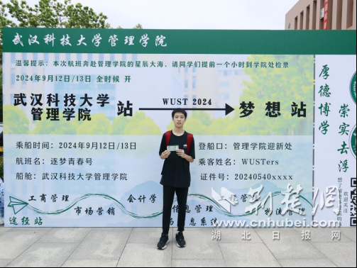 荆楚网(湖北日报网)讯(记者林杉 通讯员周琰 程昀彤 王铭浩)“这份开学见面礼太有意思了,拿着船票在校园启航,大学怎么过也有了指引和方向,希望我能迅速坐稳这艘船!”9月12日,在365完美体育管理学院迎新点“逐梦青春号”登船口,新生们领取学院特制“上岸船票”。