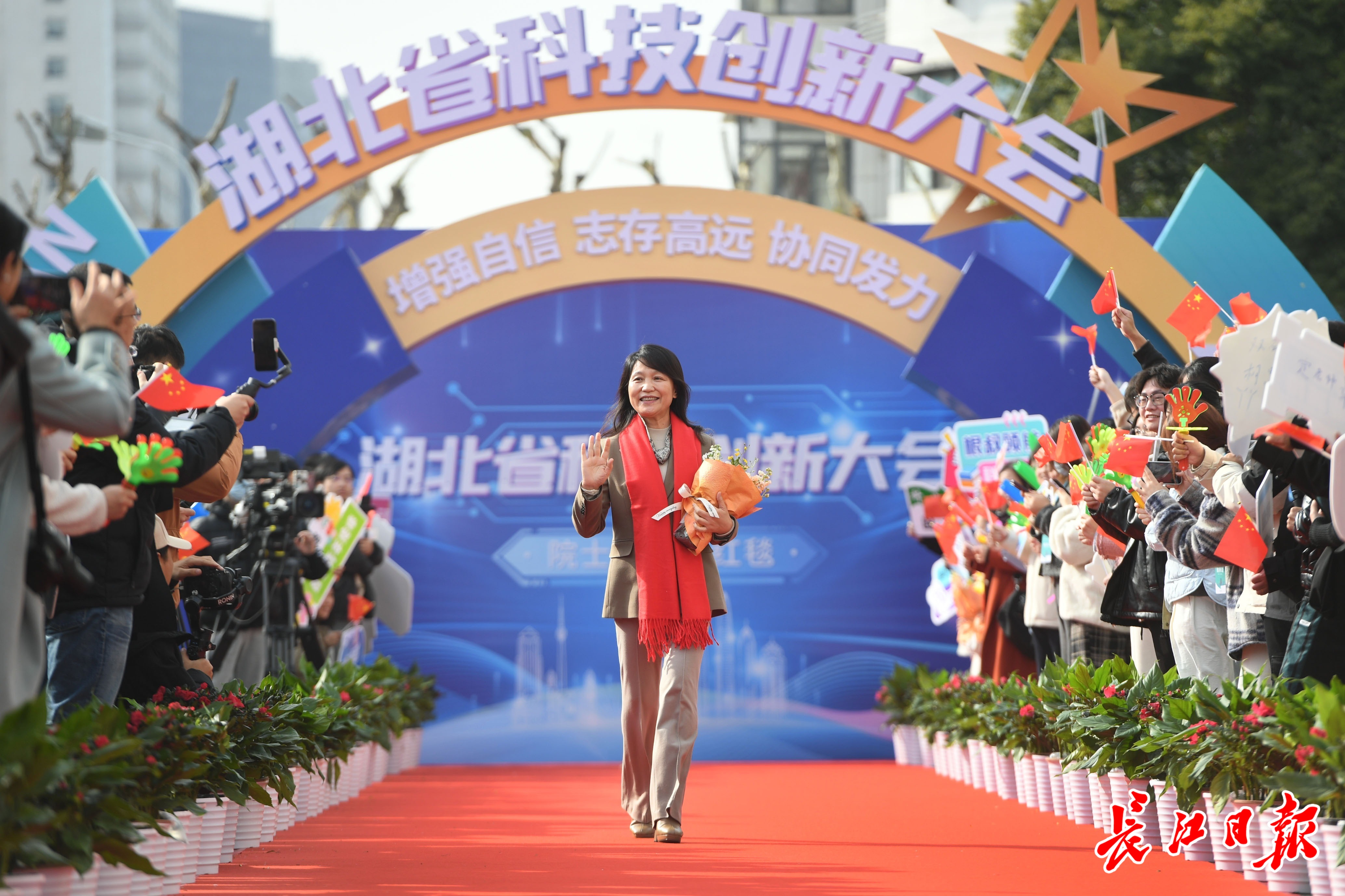 2025年1月6日,湖北省科技创新大会,丁文红教授走上“院士专家红毯”。长江日报记者 高勇 摄