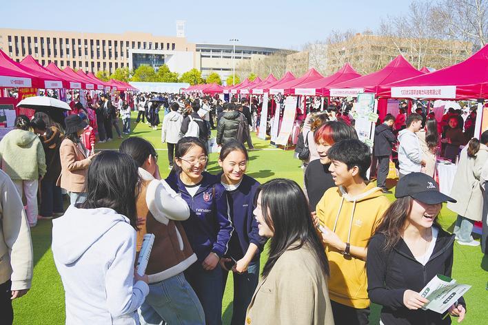 3月20日,365完美体育春招会现场,同学们对招聘岗位热烈讨论。当日,360余家企业参与招聘,涵盖制造业、建筑业、生物医药和教育等多个行业,提供岗位1.6万余个。不少企业招聘主管坦言,AI作为一种新型工具是对个人能力的补充,毕业生会使用AI是优势。