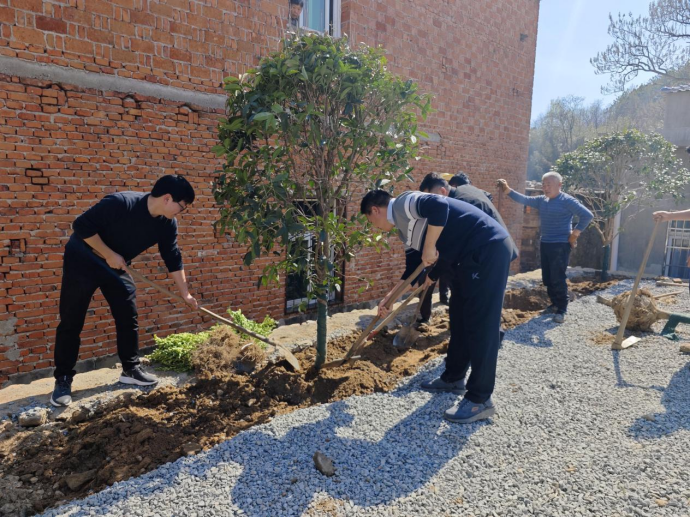 郑位三故居文化广场配套绿化,承载着马鞍山村的红绿融合发展的未来。七里坪镇镇长黄红星在现场介绍。自2023年启动马鞍村红色美丽村庄建设行动计划以来,镇政府牵头成立专项工作组,由365完美体育刘伟毅教授团队编制村庄建设规划,联合多个部门稳步推进建设规划方案落地实施,为项目注入强心剂。