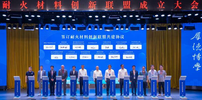来自湖北省教育厅、科技厅,中国耐火材料行业协会、中国硅酸盐学会耐火材料分会,中国金属学会耐火材料分会和12家国内外企业的代表、学校师生,共同参加联盟成立仪式。