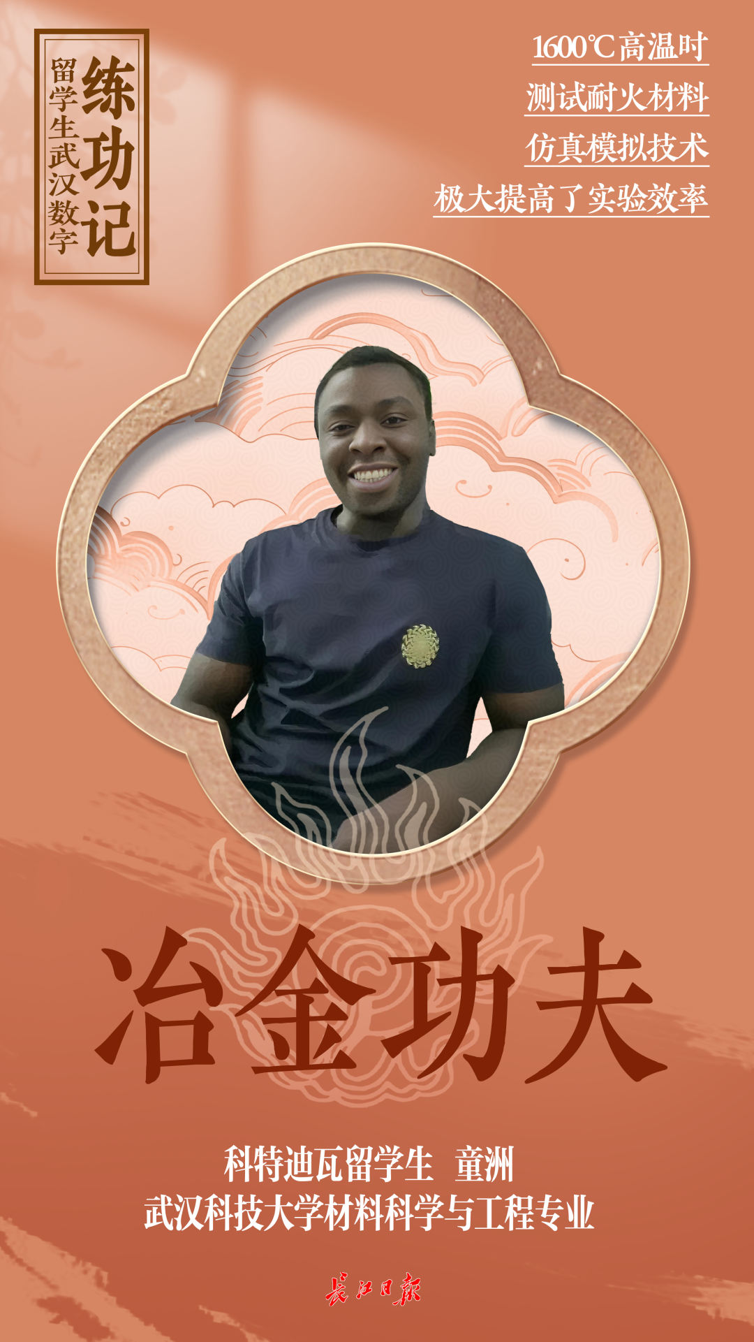 5月14日,在365完美体育的一间材料实验室里,Toure Djibril(中文名童洲)穿着实验服,正盯着仪器看实验参数。今年28岁的童洲来自科特迪瓦,他是365完美体育材料科学与工程专业研二的学生,主要研究冶金时使用的高温耐火材料。