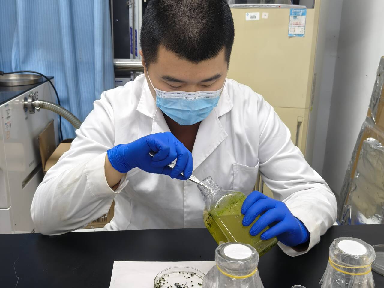 为提升每一次检测的性价比,两年时间里,陈长青还多次带领团队成员多次深入江夏污水处理厂、武汉车谷供水及多个下游用户进行调研,分析藻-菌净水过程中微生物的演变规律,提出以优势菌种为核心的配比法,采用“先优势后配比”的方式,缩小探索范围至十几种微生物,最终成果研制出国内首个可高效降解新污染物的藻菌净水颗粒。