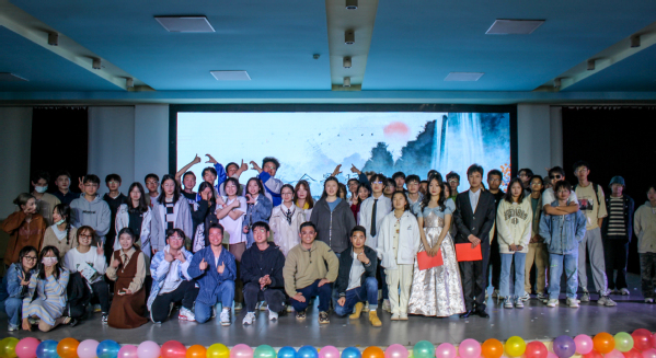 计算机学院带来首发表演《重生之康哥立棍》,该话剧以偶像剧式夸张情节开头,融合 “99次表白”“火锅代金券”“校霸校姑”等网络热词提高作品趣味性,结尾“女主”拉下假发的动作引起了全场欢笑。从表白被拒、室友安慰、诈骗转账到跳楼重生,剧情一步步走向高潮。