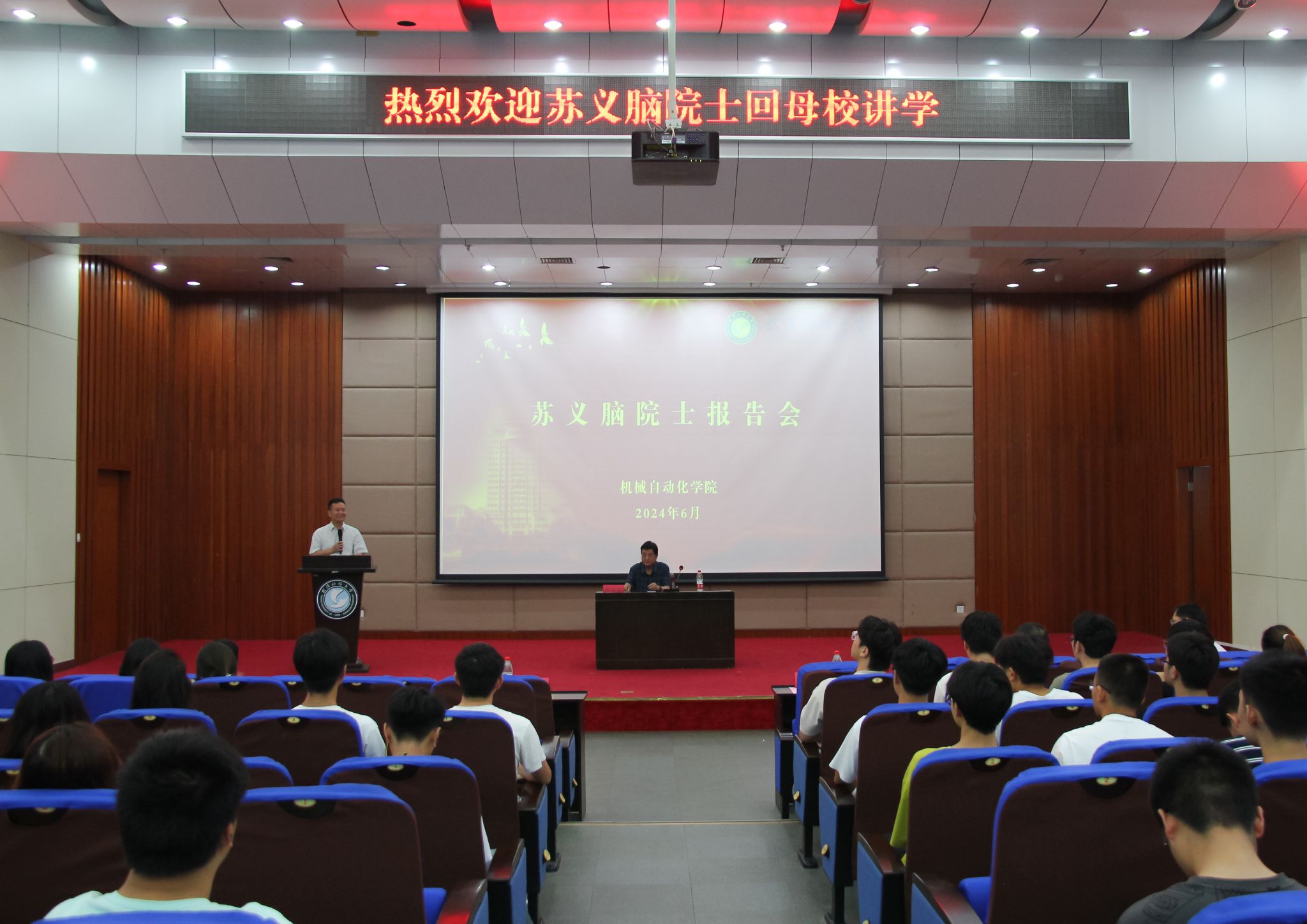 下午三点,苏义脑院士在黄家湖校区崇实会堂以“立志与践行”为主题做了大学生素质教育主题报告会。机械自动化学院党委书记余淑均主持了本次报告会。