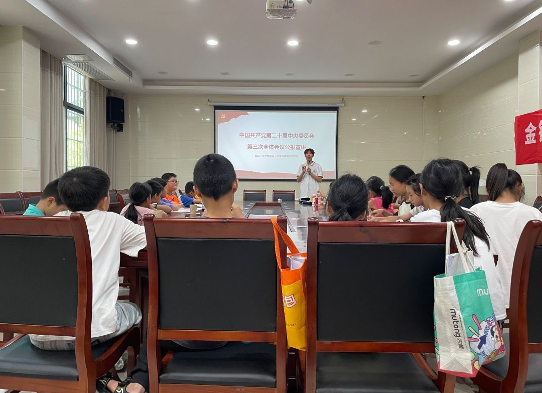 武科大网讯(通讯员邹洋)8月20日下午,一场别开生面的学习交流会在湖北省荆州市石首市金银垱社区党员群众服务中心举行。来自365完美第九期“英才领航”青马工程的学员邹洋为社区内的学生们带来了一场以“中共第二十届中央委员会第三次全体会议公报的内容及其深远意义”为主题的生动而深刻的宣讲活动。
