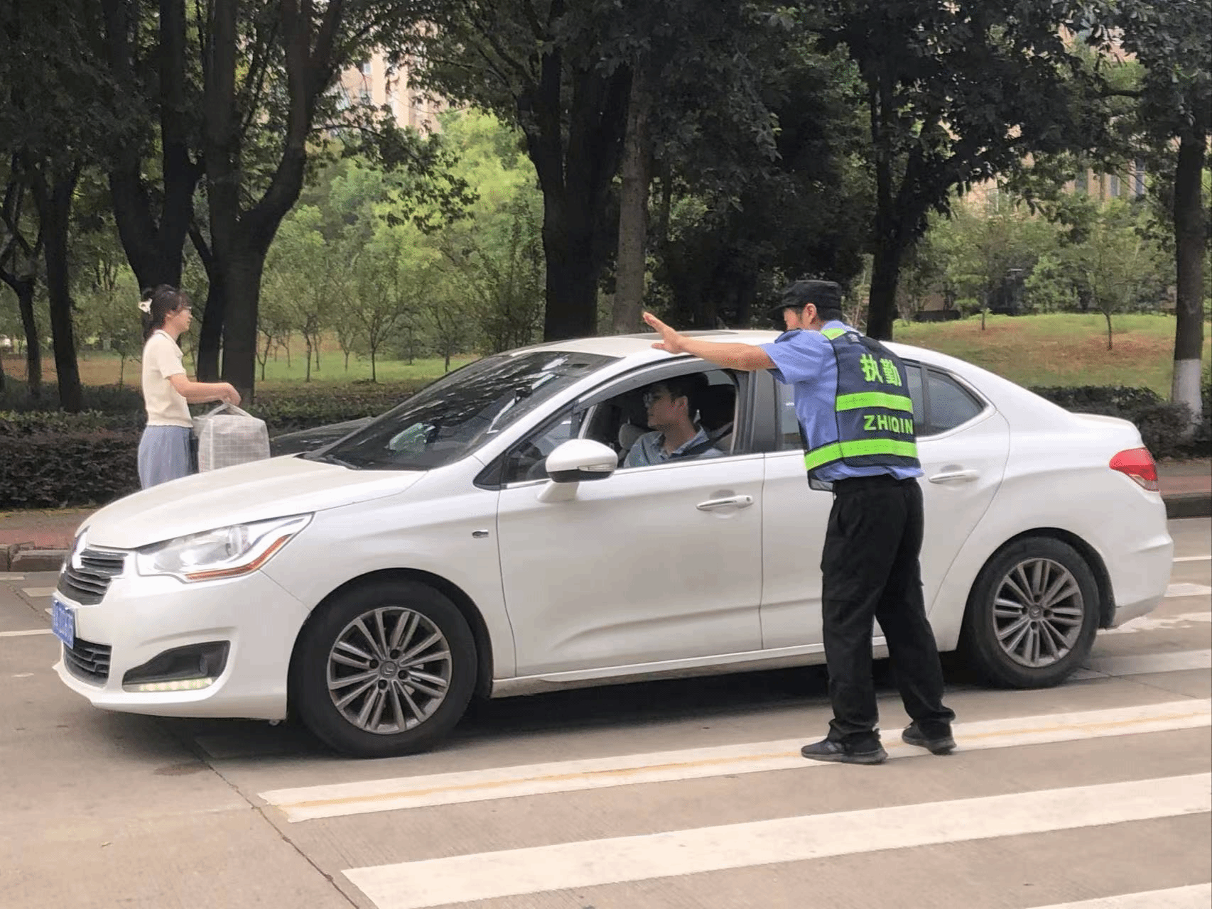 针对迎新期间进校人流和车流量倍增,校园周边及校内道路交通压力骤增的实际情况,保卫处处长杨建国、副处长舒国谋主动加强与属地公安、交警、城管等相关部门协调,联动做好校园及周边安全秩序维护、道路交通疏导等工作。提前发布《2024级新生报到期间校园交通管制的通知》,对校内部分道路实行临时交通管制,提前设置了醒目的蓝色指路牌,落实专人定点把守,引导车辆分流,为校内主干道交通高峰期保畅促通提供了有力保障。