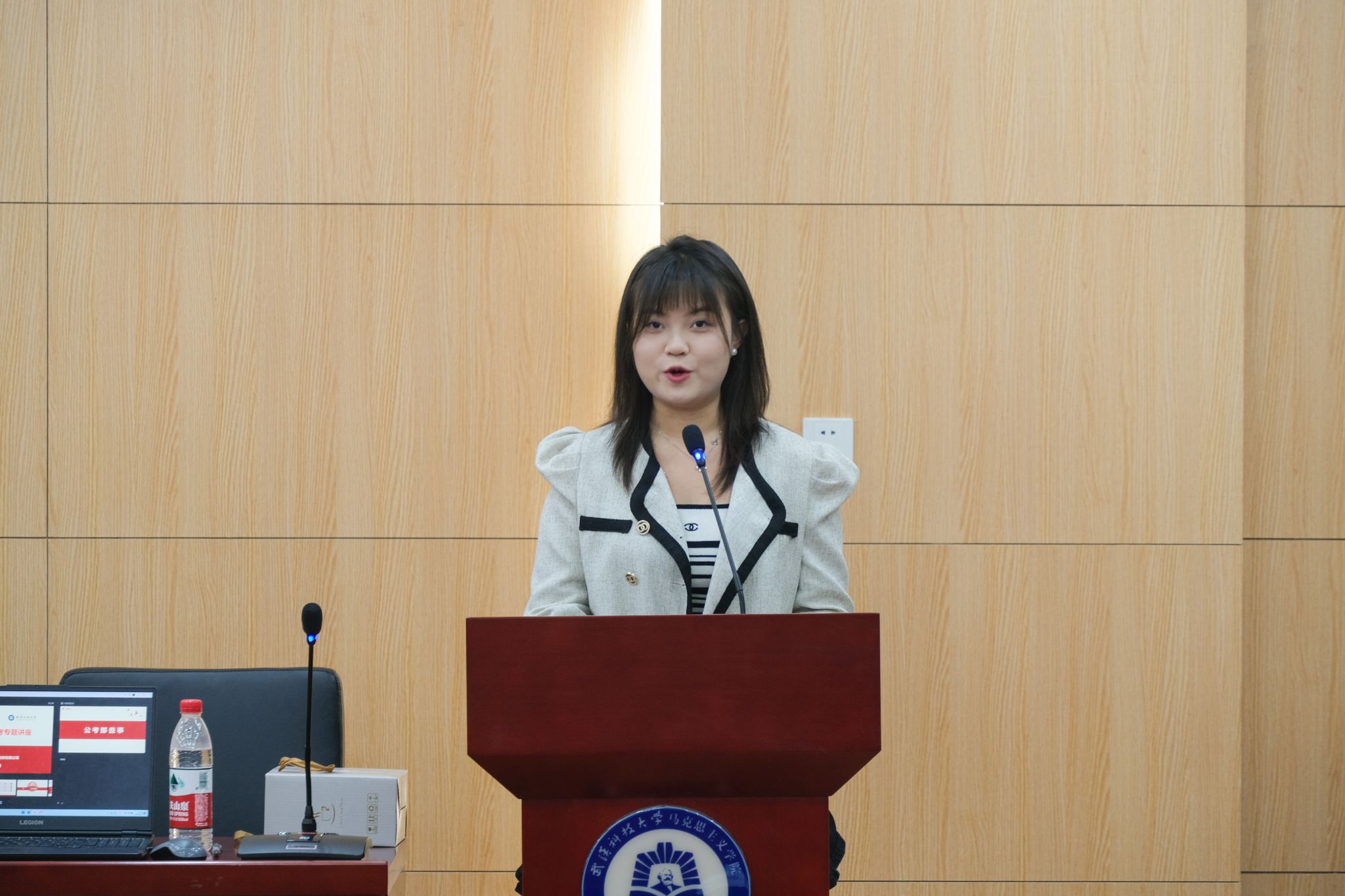 活动现场,座无虚席,学生们满怀期待地迎来了“一举成公”教育机构的资深讲师金溪老师。金溪老师以其深厚的学术功底和丰富的实战经验,为在场的学子们带来了一场关于公务员考试的深度剖析。他不仅详细阐述了公务员考试的最新政策与趋势,还结合个人教学经验,为学子们量身订制了高效的备考方案。从报考流程到福利待遇,从考情政策到复习技巧,金溪老师的讲解既全面又具体,让在场的学生受益匪浅。
